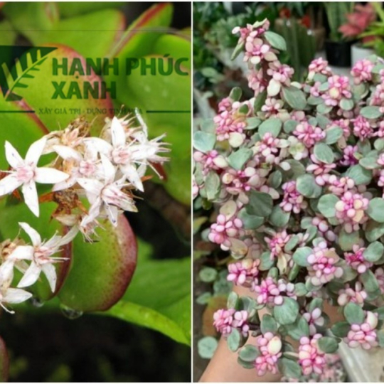 Hoa của cây ngọc bích có dạng chùm nhỏ, khi nở có hình ngôi sao 5 cánh, màu hồng nhạt hoặc trắng. Hoa mọc ở đầu cành có cuống dài nhô lên và có hương thơm nhẹ.