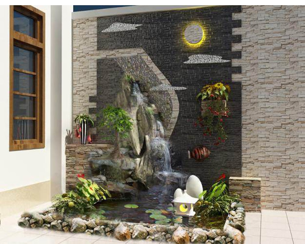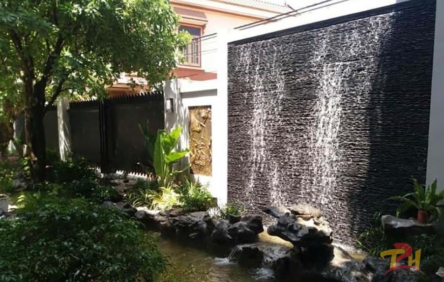 - Tường nước ngoại thất: Được thi công ngoài trời, tường nước ngoại thất thường có kích thước lớn hơn và được làm từ các vật liệu bền chắc như đá tự nhiên, gạch, hoặc bê tông. Loại tường nước này thường được bố trí trong các khu vườn, sân trước nhà hoặc lối vào, mang lại vẻ đẹp hoang sơ và mạnh mẽ, đồng thời tạo cảm giác thư giãn cho không gian xung quanh.
