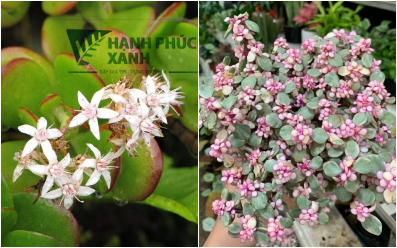 Hoa của cây ngọc bích có dạng chùm nhỏ, khi nở có hình ngôi sao 5 cánh, màu hồng nhạt hoặc trắng. Hoa mọc ở đầu cành có cuống dài nhô lên và có hương thơm nhẹ.
